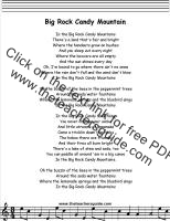 Big Rock Candy Mountain Lyrics, Big Rock Candy Mountain Printout,